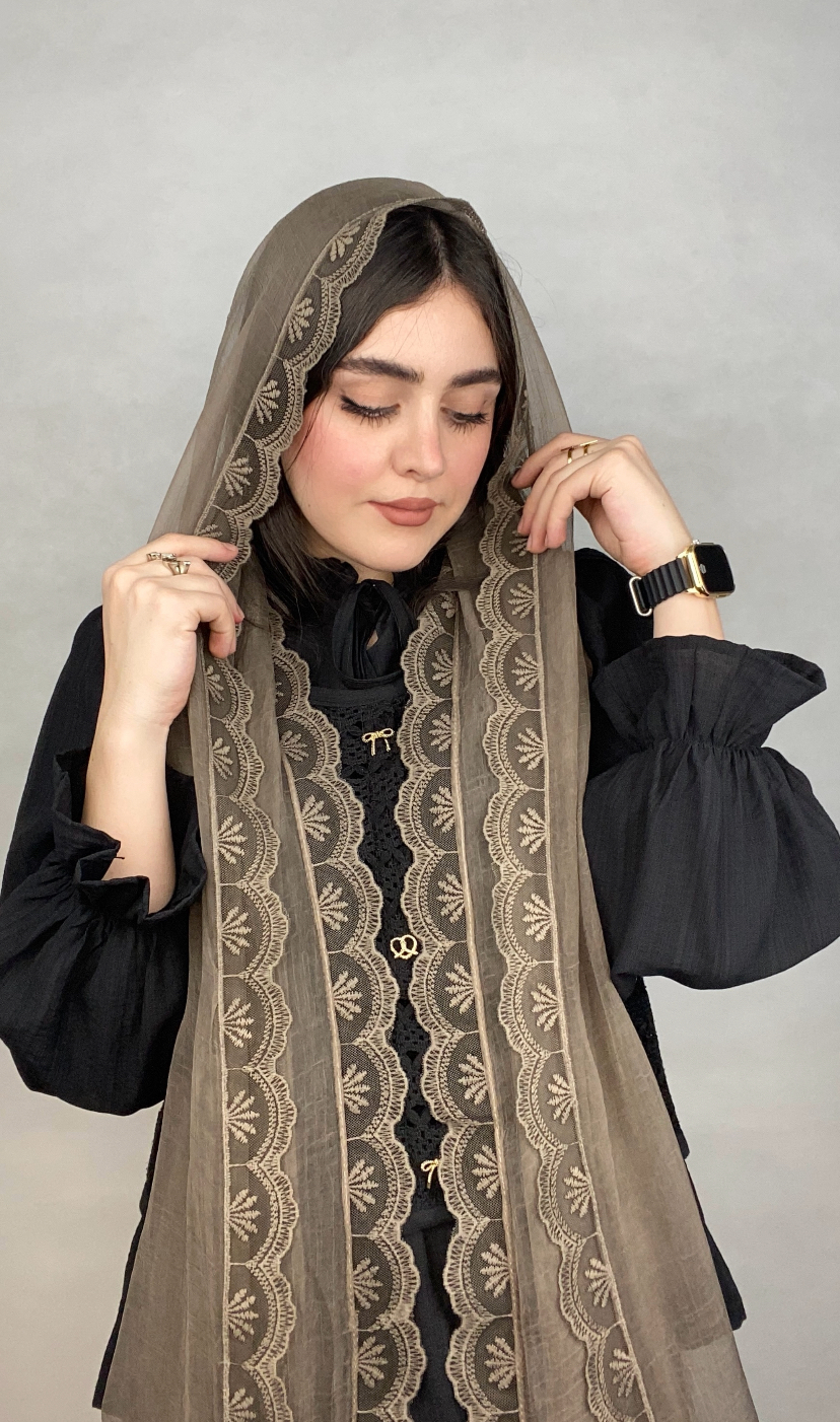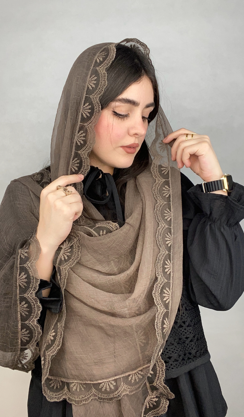 شال حریر مجلسی دانتل بزرگ